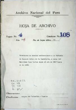 Expediente seguido por Carlos Cano, mayordomo de la cofradía de Nuestra Señora de la Candelaria, venerada en la iglesia del convento de San Francisco, solicitando aprobación de las cuentas de su cargo correspondiente al periodo del 01/02/1817 al 01/02/181