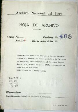 Expediente seguido por Pedro Salazar, mayordomo de la cofradía de Nuestra Señora de Loreto, fundada en la iglesia de Santa Ana; solicitando aprobación de las cuentas de su cargo correspondiente al periodo del 08/09/1795 al 08/09/1796. Ante Manuel García d