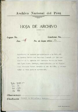 Expediente seguido por Manuel Alvarado, mayordomo de la cofradía de Nuestra Señora del Rosario, fundada por los naturales en la iglesia del Convento de Santo Domingo de Lima; solicitando aprobación de las cuentas de su cargo correspondiente al periodo del
