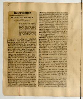 Artículo de Enrique León García titulado La cuestión higiénica, publicado en La crónica médica y reproducido por el diario La Opinión Nacional.