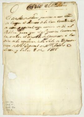 Borrador de aviso publicado por el Real Hospital de San Andrés, sobre la contratación de la Casa de Comedias de Lima.
