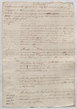 Borrador de la calificación de absolución o suspensión, puesta a la respuesta que presentó Carlos Lisson, como ex contador de la Dirección General de Censos y Obras, por los reparos a sus cuentas, correspondiente al año 1823.