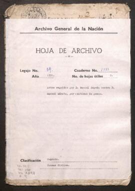Domingo Cepeda contra Pedro Pallasca y Manuel Domingo de Zárate, sobre cantidad de pesos por préstamo. Incluye testimonio de escritura, mandamiento. Ante José Matías Vásquez de Acuña y Menacho, conde de la Vega del Ren, alcalde ordinario de Lima.