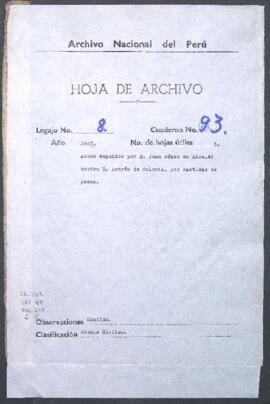 Juan Gómez de Lasalde, morador de Lima, contra Andrés de Colonia, vecino de esta ciudad, sobre cantidad de pesos por préstamo. Incluye testimonio de escritura. Ante José de Agüero y Añasco, maestre de campo, alcalde ordinario de Lima.