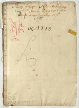 Juan Próspero Solís Vango, arrendatario de la chacra Pariachi, situada en el valle de Huascata, contra Nicolás Franco, indio invernador, por cantidad de pesos de la liquidación de cuentas por un contrato que celebraron para la invernación de mulas de arrieros y de particulares en los pastos de su chacra. Ante Pablo Patrón de Arnao, alférez del presidio del Callao, corregidor y Justicia Mayor del pueblo de Santiago del Cercado.