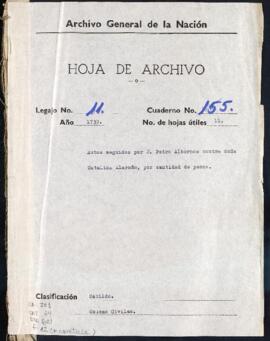 Pedro Albornoz, fraile de la Orden de Nuestra Señora de la Merced, contra Catalina de Alarcón, quien fue albacea de Martín de Alarcón, su hermano, sobre cantidad de pesos por préstamo. Incluye mandamientos, correspondencia. Ante Juan José de Aliaga y Sotomayor, maestre de campo, alcalde ordinario de Lima.