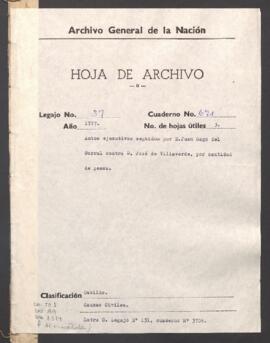 Manuel Gago del Corral contra José de Villaverde, sobre cantidad de pesos por importe del azogue que sacó de la Real Caja. Incluye testimonio de escritura, mandamiento. Ante Francisco José de la Puente y Sandoval, maestre de campo, alcalde ordinario de Lima.