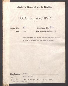 El marqués de Negreiros contra José de Lazarte, sobre cantidad de pesos por el arrendamiento de su hacienda ubicada en esta ciudad. Incluye mandamientos. Ante Francisco Calatayud y Borda, caballero de la Orden de Santiago, abogado de la Real Audiencia, alcalde ordinario de Lima.