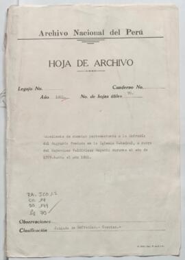 Comprobantes de la cuenta de cargo y data presentada por Eugenio Valdivieso y Villarroel, mayordomo de la cofradía del Santísimo Sacramento o de Nuestro Amo Sacramentado, fundada en la capilla del Sagrario de la Catedral de Lima, correspondiente al period