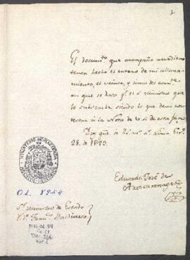 Oficio de Eduardo José de Arrescurrenaga, a Francisco Valdivieso, ministro de Estado, comunicando que cumplió con la entrega del empréstito que se le señaló.