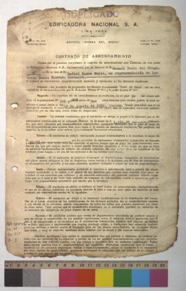 Contrato de arrendamiento que celebraron, de una aprte, la Edificadora Nacional S.A., representada por su gerente el señor Manuel Parra del Riego y de la otra el señor Rafael Larco Hoyle, en representación de los señores Larco Herrera Hermanos.A quienesn se denomirá, respectivamente, locadora y conductor, en los términos que indica este contrato.