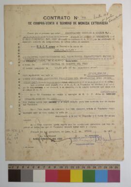 Contrato N° 779 (Formato del banco) de compra-venta de divisas suscrito entre la Negociación Chiclín y Anexos S. A. y el Banco Comercial del Perú (BCP), donde este último le compra cantidad de dólares a la Sociedad Larco.