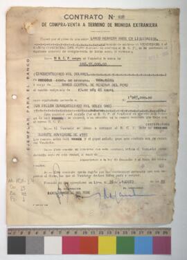 Contrato N° 628 (Formato del banco) de compra-venta de divisas suscrito entre la Sociedad Larco Herrera Hermanos en liquidación y el Banco Comercial del Perú (BCP), donde este último le compra 55 mil dólares a la Sociedad Larco.