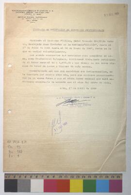 Contrato de prestación de servicios profesionales donde la Negociación Chiclín y Anexos S. A., representada por Jorge Cox Valle Riestra, contrata a Armando Trujillo Maraví, contador público, como consultor en Lima.