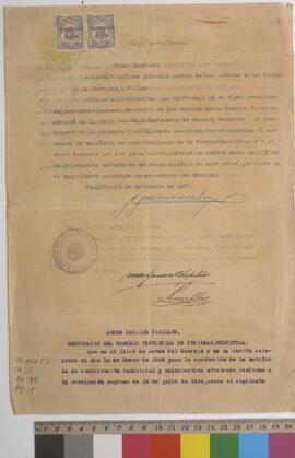 Copia certificada expedida por Jorge Enrique Pinillos, Secretario del Consejo Provincial de Trujillo, sobre la disminución en la contribución anual que paga el bazar de la Hacienda Chiclín y se suprima la aceptación hecha a la contrata y al restaurante de dicha hacienda.