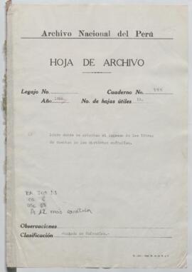 Cuaderno de registro de ingresos y salidas de los expedientes de cuentas de diversas cofradías, a cargo de Casimiro Salvi, escribano del Juzgado de Cofradías, correspondientes al periodo del 14/07/1844 al 07/11/1860.