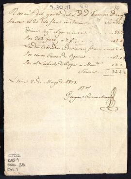Cuenta de lo que Tomás Diéguez ha gastado hasta el 20 de mayo, a cargo de Gaspar Corrochano.