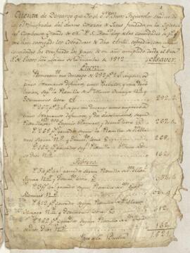 Cuenta de descargo presentado por Justo Figuerola, síndico de la Archicofradía del Divino Corazón de Jesús, fundada en la iglesia del Convento de San Francisco de Lima; correspondiente al periodo del 01/01/1812 al 31/12/1812.