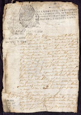José Perfecto de Salas, defensor general de menores de la Real Audiencia de Lima, sobre cumplimiento de testamento de Manuel Sánchez, capitán, para que le entregue cantidad de pesos a Manuel Sánchez Blanco, su hijo, por haber contraído matrimonio. Ante Miguel de Muñoz Mudarra y Roldán, marqués de Santa María, alcalde ordinario de Lima.