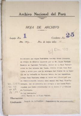 Jacinto Rodríguez, síndico nombrado por Mariano Luján, padre provincial de la Orden de Predicadores, para el culto a la imagen de Nuestra Señora de las Angustias, venerada en la capilla de la iglesia del Convento de Santo Domingo, contra Juan Bautista Ari