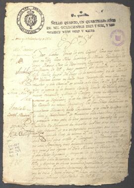 Expediente seguido por José Salas, vecino de Lima, padre legítimo de María Guadalupe Luzero, solicitando que Ignacio Palacios acepte la cantidad de pesos que pagó por su hija esclava y la devuelva a Isidora Luzero, su ama. Ante Diego Miguel Bravo de Rivero y Zavala, marqués de Castel-Bravo, caballero de la Orden de Santiago, regidor perpetuo del Ayuntamiento de Lima, alcalde del crimen de la Real Audiencia y auditor general de Guerra.