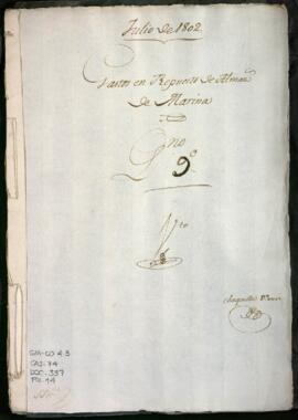 Documentos contables de los gastos para la habilitación o repuesto de los Almacenes de Marina a cargo de José Bernardo de Tagle y Portocarrero, comisario de Guerra y ministro de Real Hacienda y Marina, correspondientes al mes de julio de 1802.