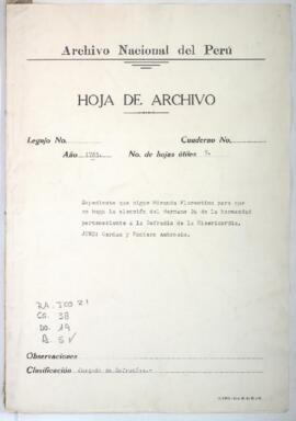 Expediente seguido por Florentino Miranda, maestro platero, solicitando la separación de Pedro Cañoli y Salvador Nava, como hermanos veinticuatro de la cofradía de Nuestra Señora de la Misericordia, y la elección de nuevos hermanos para que se proceda a l