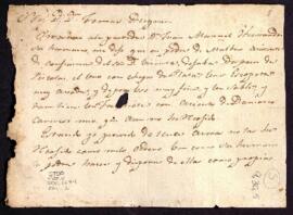 Correspondencia a Tomás Diéguez donde se le comunica que Juan Manuel Hernández dejó en poder de Malbino, asistente de Vicente, dos pares de pistolas, una escopeta, un sable y un taburete.