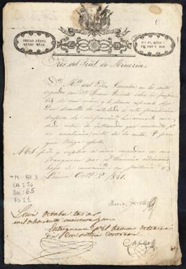 María del Pilar Gonzáles, en autos con Juana Iriarte, sobre la propiedad de una mina, solicita entrega de los autos en cuestión. Ante el Tribunal de Minería de Lima.