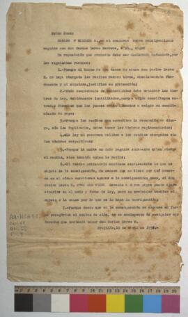 Notificación de la demanda interpuesta por Olga Martha Moreno Fonseca contra la Negociación Chiclín y Anexos, S.A., sobre exhibición de Títulos. Ante el señor Juez. Incluye nota.