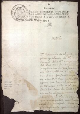 Expediente seguido por Domingo de Urquizo, capitán graduado de teniente coronel de la 6a compañía del Batallón de Milicias Disciplinadas de Infantería de Españoles de Lima, solicita licencia.