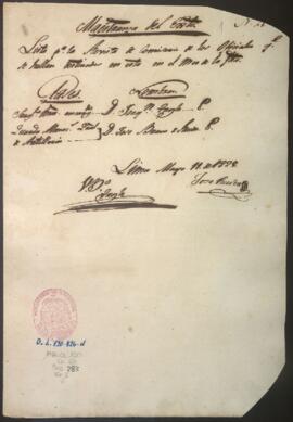 Lista de revista de la Maestranza del Ejército, correspondiente a mayo de 1825, a cargo de José Bravo de Rueda, guarda almacenes general de Artillería.