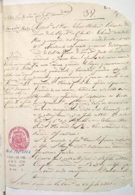 Borrador de cédula que asciende a Sargento Mayor de la Caballeria del Ejército a José María Frias