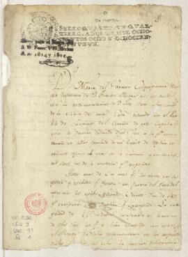 María del Carmen Colquipuma, esposa de Timoteo Olivera, en los autos con la testamentaría de José Ortiz, sobre nulidad de escritura de venta de una casa situada en el pueblo de Santiago del Cercado, solicita que Manuel de Almoguera, devuelva los autos. Ante Francisco Alvarado Vásquez de Velasco, conde de Cartago, regidor, subdelegado del partido del Cercado.
