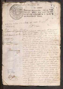 Francisco Cervantes, sobre otorgamiento de su libertad por no haber cometido delito alguno. Ante Gaspar Zevallos y Calderón, marqués de Casa Calderón, alcalde ordinario de Lima. Procede del Superior Gobierno.