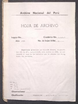 Nicolás Rivera, guardia del río de Ate, solicita pago de suelos que le adeudan los hacendaos y arrendatarios del valle de Ate, por la prorrata que tienen asignados desde 1793 a cuatro reales por riego. Incluye lista de deudores. Ante Manuel Pardo Rivadeneira, alcalde del crimen y juez de aguas de Lima.