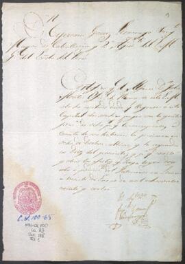 Certificación expedida por Cipriano Gómez y Lizárraga, ayudante segundo del Estado Mayor General del Ejército del Perú, dejando constancia que Julio Montes, oficial de plana de este estado mayor, desde que ha llegado a Lima solo ha recibido dos medios sueldos con gratificación.