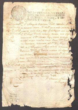 Mariano Narciso de Aragón, abogado defensor de menores de la Real Audiencia de Lima, solicita que José Dávila se abstenga de realizar la venta de una esclava perteneciente a la menor María Vega. Ante Ignacio Cavero Vásquez de Acuña, maestre de campo, alcalde ordinario de Lima.