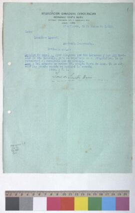 Carta de Ines de Santa María, Representante de la Negociación Ganadera Conocancha, a Leonidas Egoavil, Administrador de la Hacienda Conocancha, comunicando que ya llegaron los sesicientos carneros y los cien novillos de la Hacienda Conocancha, para beneficio del frigorífico nacional y que no remita ningún fardo de lana.