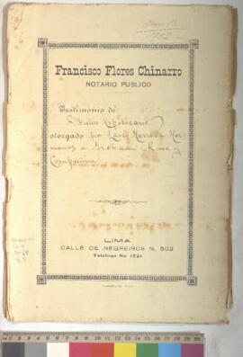Testimonio de escritura de contrato, expedida por Fernando S. Chávez, notario público de la provincia de Trujillo, sobre el registro de escritura del contrato celebrado entre Rafael Larco Herrera, representando a la Sociedad Agrícola Larco Herrera y Graham Rowe y compañía.