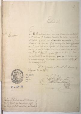 Oficio de José de Perochena a José de San Martín, capitán general del Ejército Libertador, informando que se registró un sótano del Convento de San Francisco por una denuncia de haberse escondido dinero; pero no se tuvo resultado alguno.