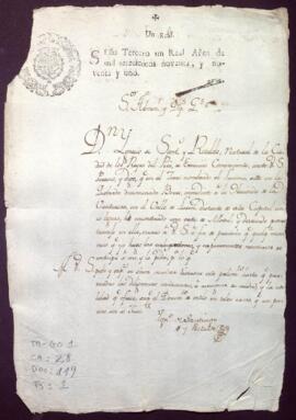 Ignacio de Santiago y Rotalde, natural de Lima, comerciante solicita registro de una veta que descubrió en el cerro de Lúcumo, en la Quebrada Berri, valle de Lurin. Ante el Real Tribunal de Minería.