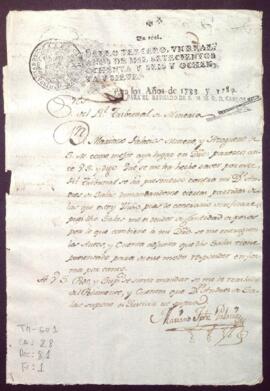 Mariano Palacios solicita los autos de la causa seguida contra Andrés de Salas. Ante el Real Tribunal de Minería.
