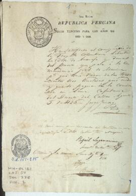 Expediente promovido por Juan Tabara, sobrecargo de la fragata colombiana Libertad, solicitando licencia de salida para dicho barco, listo para partir a los puertos de Paita y Guayaquil.