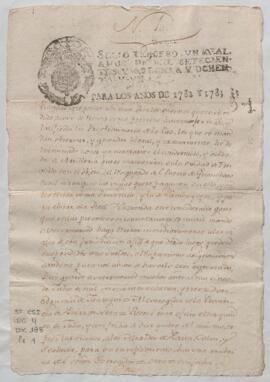 Testimonio de Auto de José Vicente de Zavala, corregidor y Justicia Mayor de Piura, sobre cumplimiento de la orden de Agustín de Jáuregui y Aldecoa, virrey del Perú, para retirar a los vigías del puerto de Huanchaco, acreditando haberse reunido con los alcaldes de los pueblos de Sechura, Colán y Paita para el pago de sueldos de los vigías retirados.