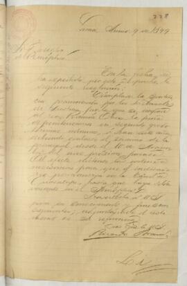Testimonio de condena de Ramón Olivos, sentenciado a 7 años de penitenciaría por la violación de Ermelinda Prado, trabajadora en los potreros de Campuy. Pronunciada por José Viterbo Arias, juez de primera instancia de Lima. Expedido por Genaro M. Chávez, escribano del crimen. Contiene filiación. Incluye oficio y recibo.