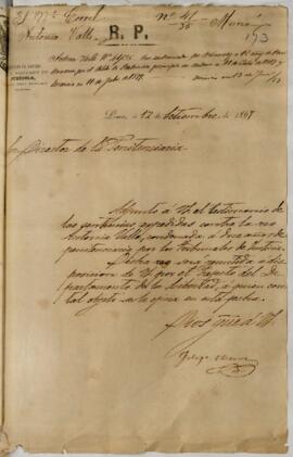 Testimonio de condena de Antonia Valle, sentenciada a 12 años de penitenciaría por el homicidio de Eugenia Valle, su hermana. Pronunciada por la Corte Superior de Justicia de Cajamarca. Expedido por Ricardo Mathews, escribano público. Incluye oficio. [Falleció el 13-06-1869].
