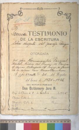 Testimonio de escritura de protocolización de un documento sobre la disputa del paraje Pongos, que otorga Hermegildo Pascual, Martell, síndico del Consejo Municipal de Pampas, Estanislao Guzmán, alcalde de Pampas y Gregorio Pascual Montoya, gobernador de Pampas, a favor de los señores Larco Herrera Hermanos. Ante Baldomero Jara, Notario Público.