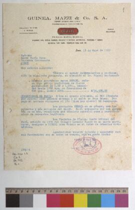 Carta de Guinea Nazca Co. S.A. "Berkel" a los Señores Santa María, informándole sobre la propuesta y condiciones de venta de una báscula automática, esfera tipo reloj.